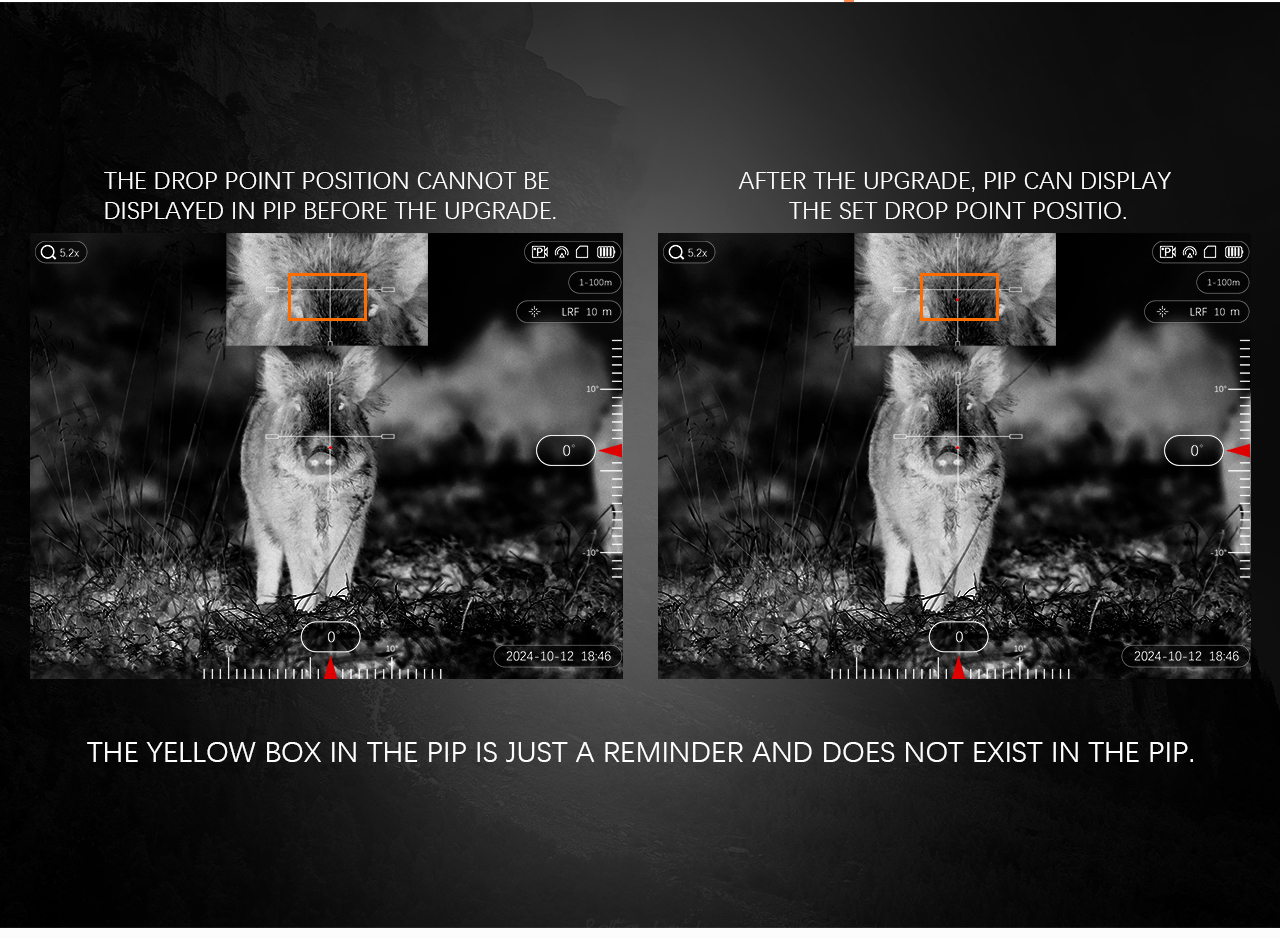 After upgrading and turning on the PIP function, the ballistic landing point can be displayed in the picture-in-picture according to the landing point you set.